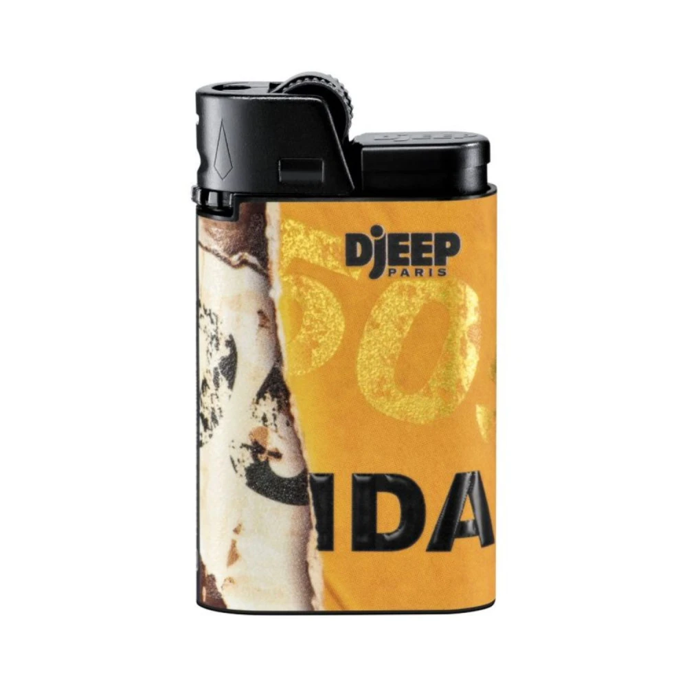Les briquets Djeep possèdent une silhouette originale. Large et fin, ces briquets premium sont fabriqués en France. Découvrez une plaquette de 24 briquets assortis de la collection « Ripped Paper », avec des designs de papiers déstructurés. Environ 6 x 3.5 cm, décors uniques grâce à une combinaison de matières avec des parties holographiques