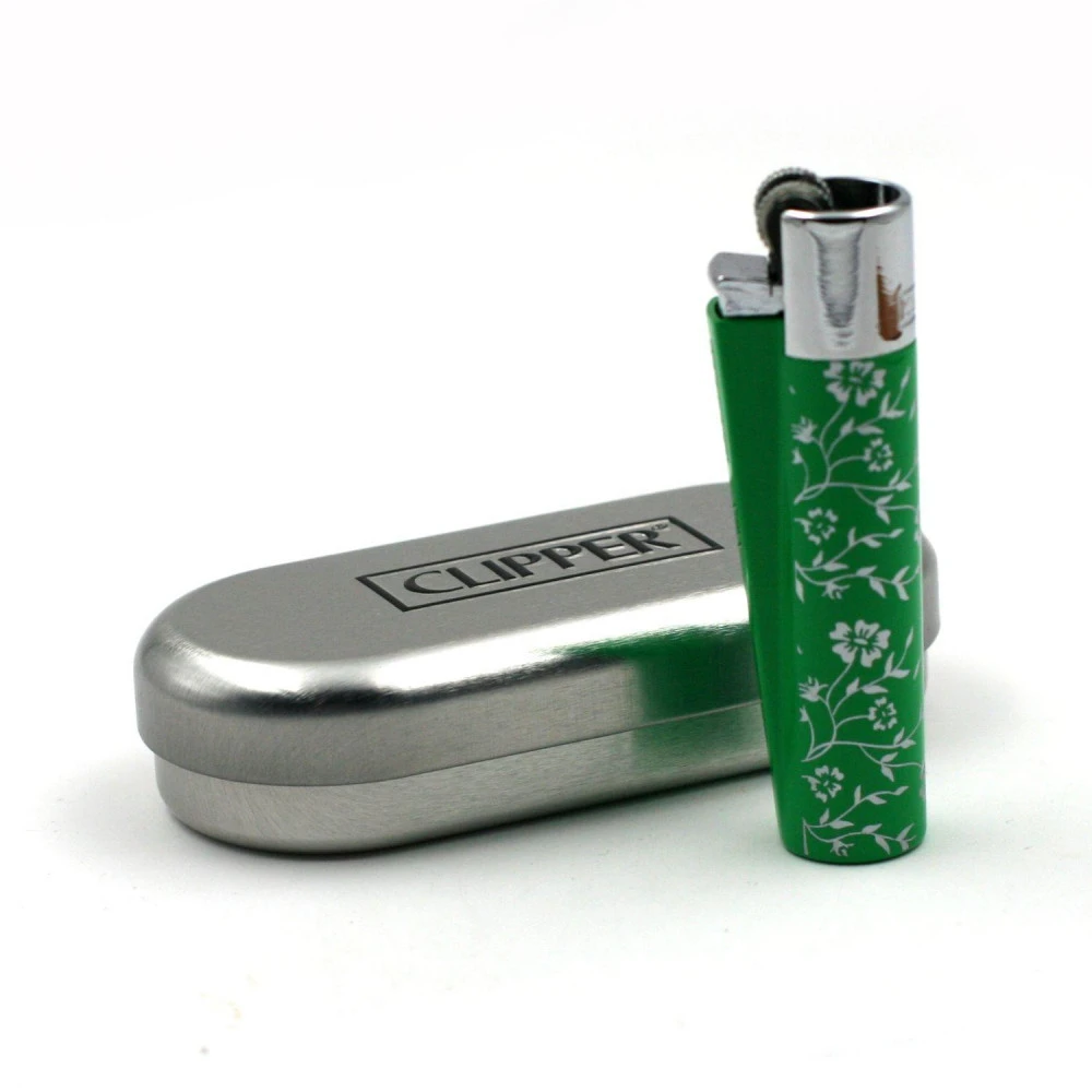 Briquet en métal en coffret de la marque Clipper, Green Pattern
