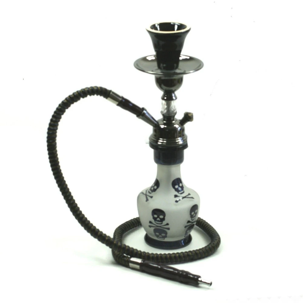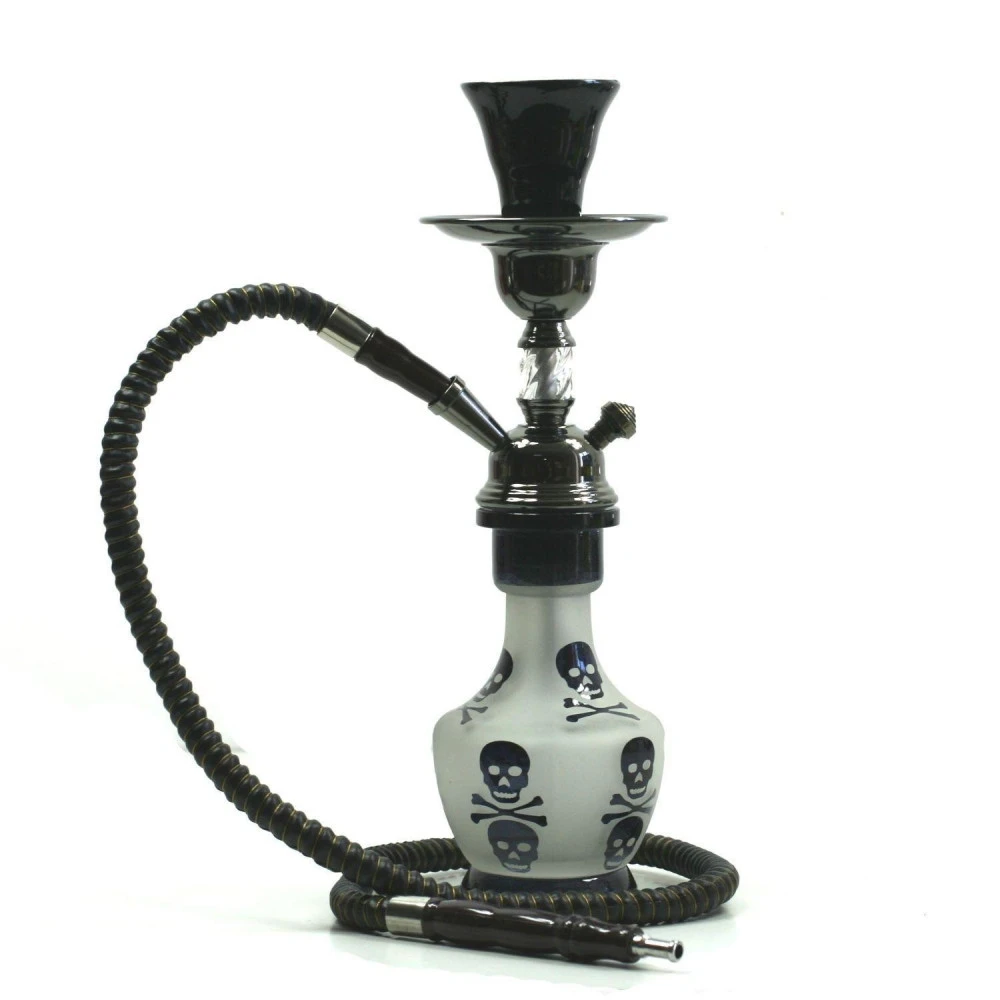 De couleur noir, ce narguilé de 33 cm décoré de têtes de mort est un narguilé solide avec un design original.