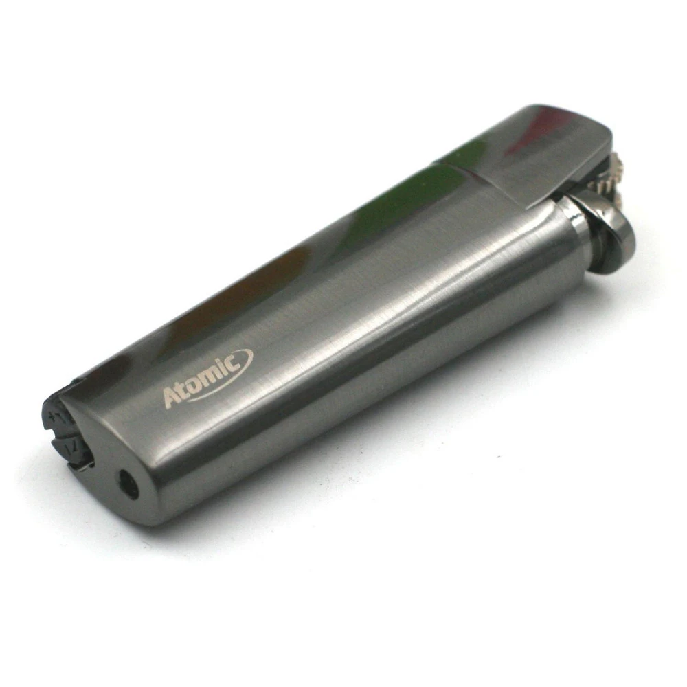 Sur ce présentoir retrouvez 6 Briquets effet métal avec plusieurs coloris et 6 Briquets colorés avec effet pailleté métallisé (Bleu, Rouge, Jaune, Rose fluo, Orange fluo, Vert fluo). Ces Briquets de la marque Atomic sont rechargeables et la flamme réglable avec une molette située au bas du briquet.