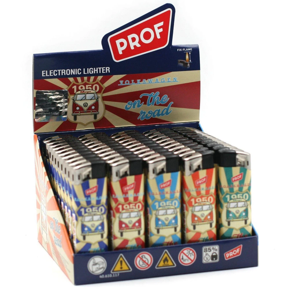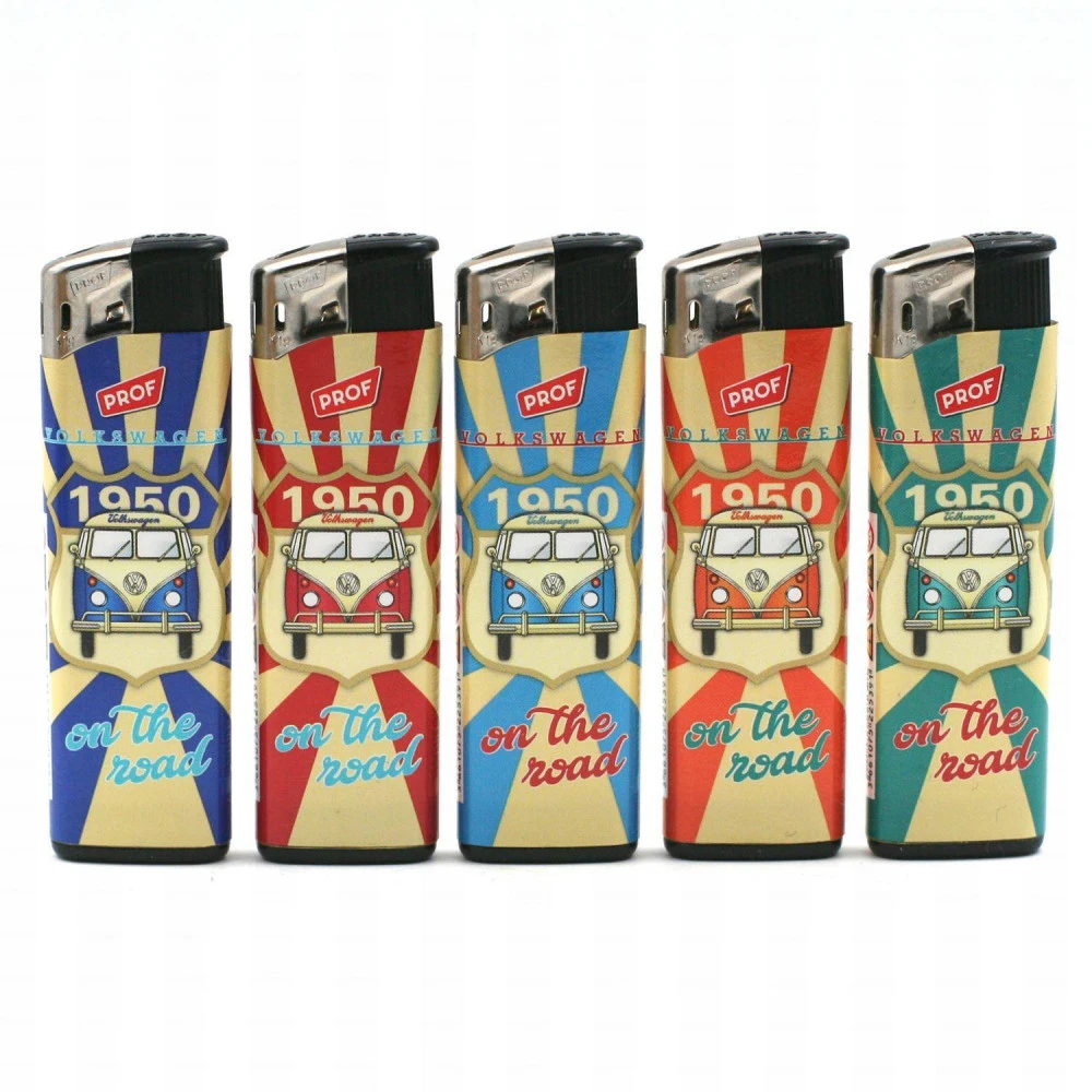 Briquets électroniques en lot de 50, briquets rechargeables avec flamme réglable. 5 modèles différents sur le thème des automobiles V.W